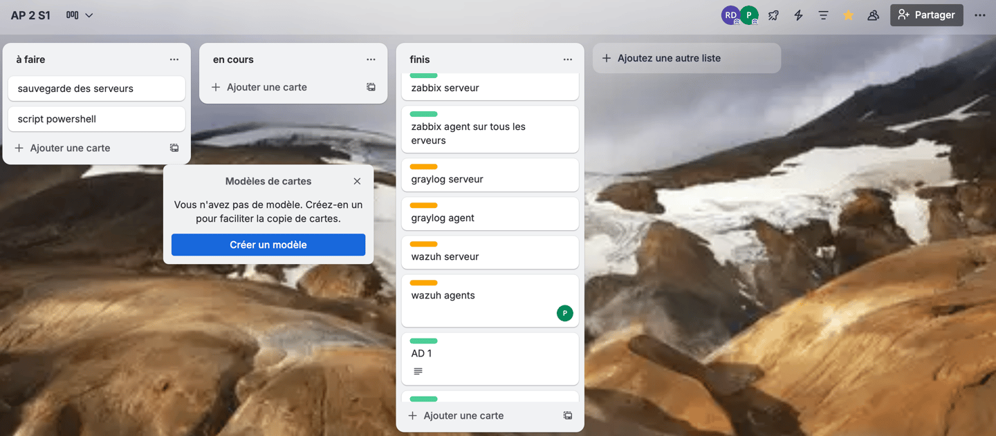 • AD, DHCP, DNS, SRVWEB, GLPI, PMO2