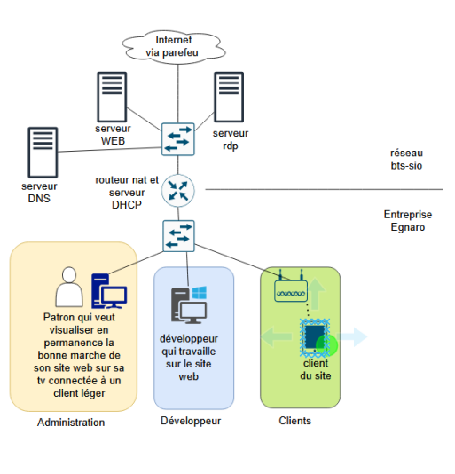 - Un réseau web complet: Serv WEB, DNS, RDP